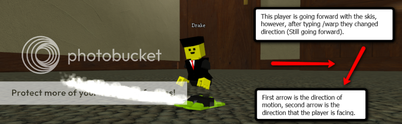 Today at the [C] Secondary, Azazel and I were fooling around with skis and gapping a wall he built. While I was gaining speed, I typed /warp so I could get to a different location. When I did this, My player faced in a different direction, however, I was still going forward. Also, I did not warp to a different location.