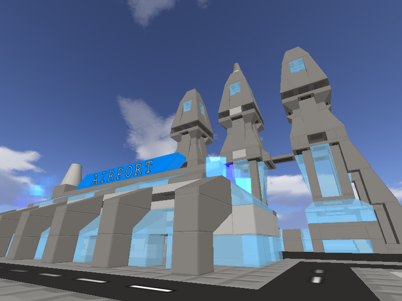 The Airport; in the 2050's large AeroCruise Ships were used instead of planes. Behind the terminal you see the docking towers.