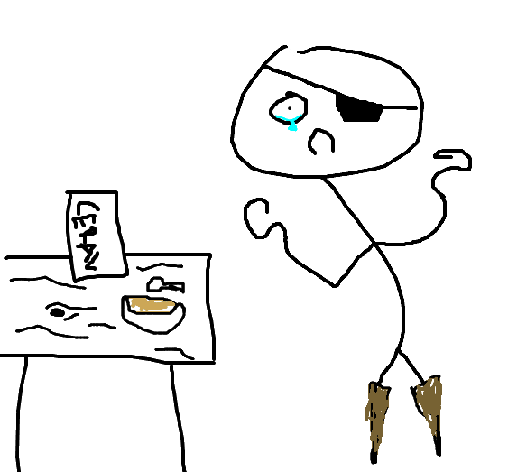 can you draw me a picture of a guy with two hooks for hands and hes trying to eat cereal but he cant haha