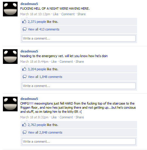 Meowington is FINE, he's had some small things happen but I don't like to talk about it :(