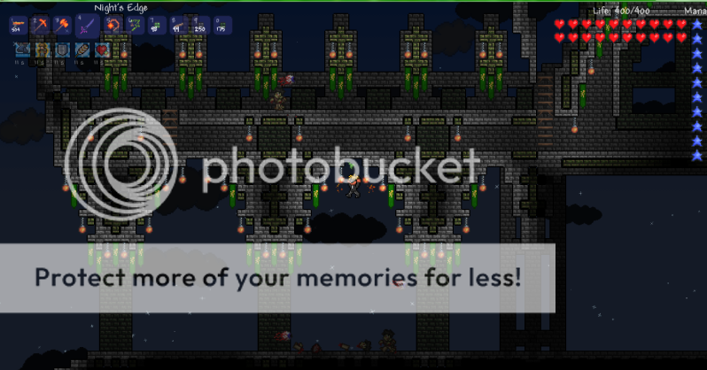 Easy enemies. Although there are enemies that are a good deal tougher than anything Minecraft has seen (namely hornets, once they got their shooting stingers) there's still lots of knockback involved, and the lack of a third dimension means things can't really surround you unless you jump into them first, and things can't sneak up on you like creepers can. Not to mention, for Minecraft there's mods making enemies smarter: not so for Terraria. In fact, this brings me to another topic: