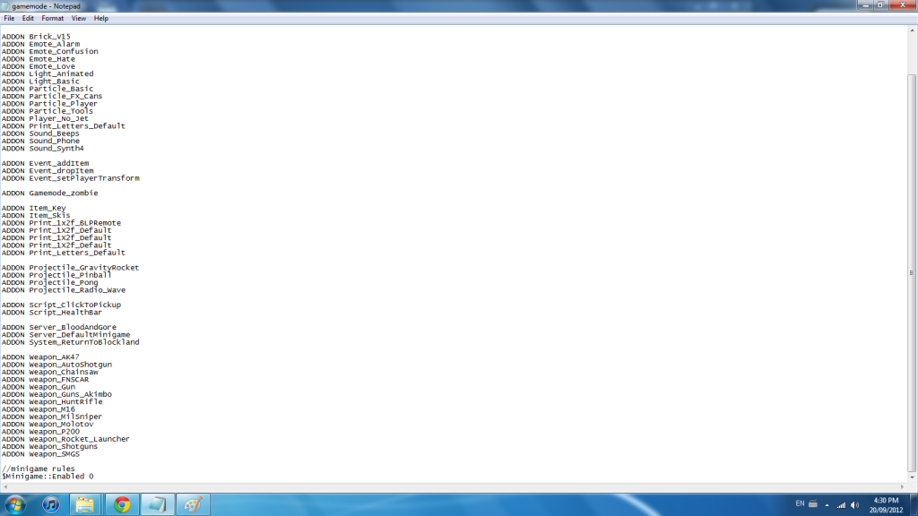 Ok So I am trying to make a zombie gamemode (So I wont have to select the addons I wan't all the time). Here is the list (A litttle is cut off on the top but its just default).