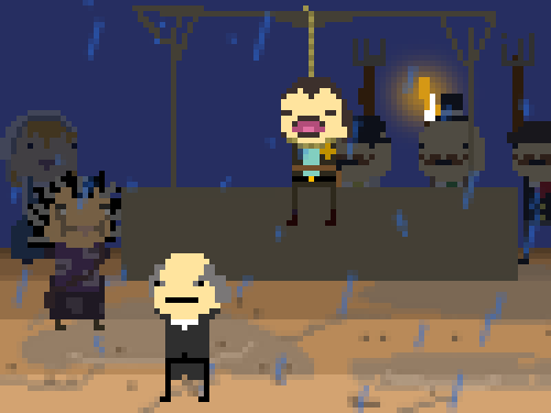 You arrive in town during what appears to be a hanging.