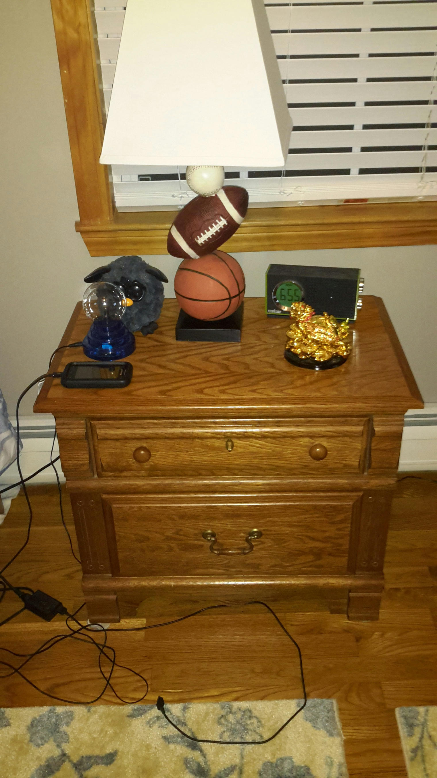 I sleep on the bed to the left. The top bunk is used for storage.