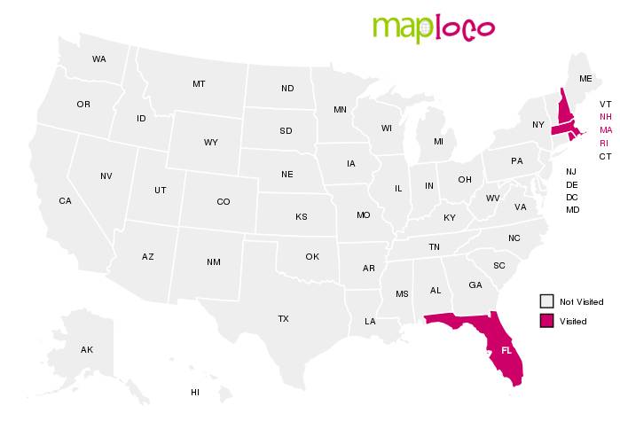 New Hampshire: Went to the one and only Nascar race I will ever go to there(won free tickets), spent two days there. I've also been snowboarding there before.