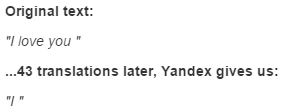 ...43 translations later, Yandex gives us: