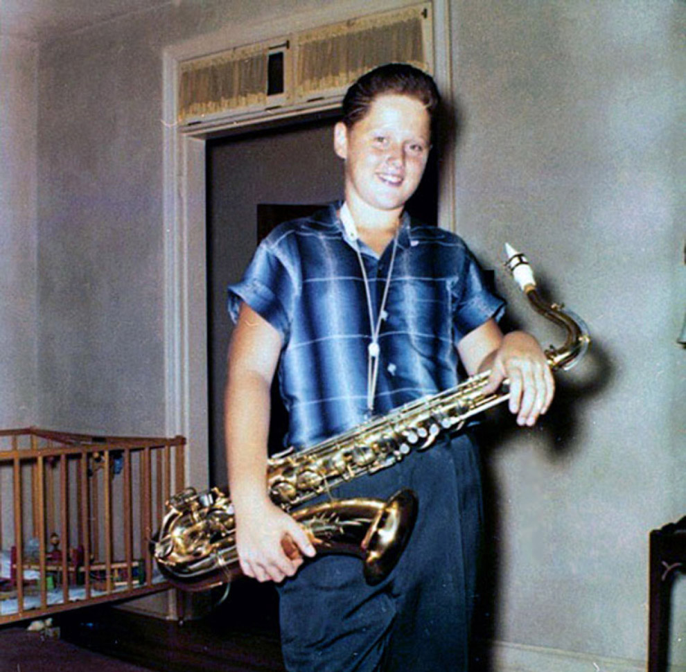 Bill Clinton with a saxophone