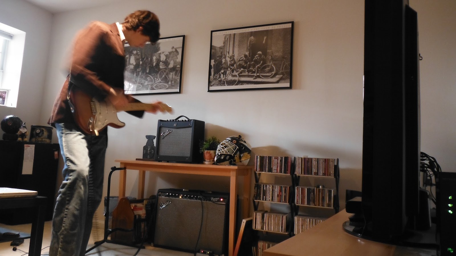 i was originally using the Kustom for the band and my bass player used the Line 6 for the bass since he used that amp for a couple months after he bought it back when we both played guitar without a bassist, before he picked up the bass, and i never really thought to part with the Kustom since i didnt really care because it has a great sound to it, but now that i have the Line 6 and the 4 channel footboard, i enjoy messing with the digital effects. i used to not want to get into the digital effects and stay simple, preferably with a tube amp like the Vox AC30VR i've been wanting for a while, but now i have this loving rad like gain-y kind of dark dirty sound, and my clean sound has a nice flow with a tiny bit of power to it, but it's not at all bassy. i wasnt going for any heavenly sound like the '65 TR has or anything. i was kind of referencing off Tom Delonge a little bit (not the new stuff, i'm talking early '00s) since he has that kind of sound i'm going for, and i like it. of course i changed it up a bit. i also have a channel with the same clean sound with the reverb up like halfway and the chorus up a bit too.
