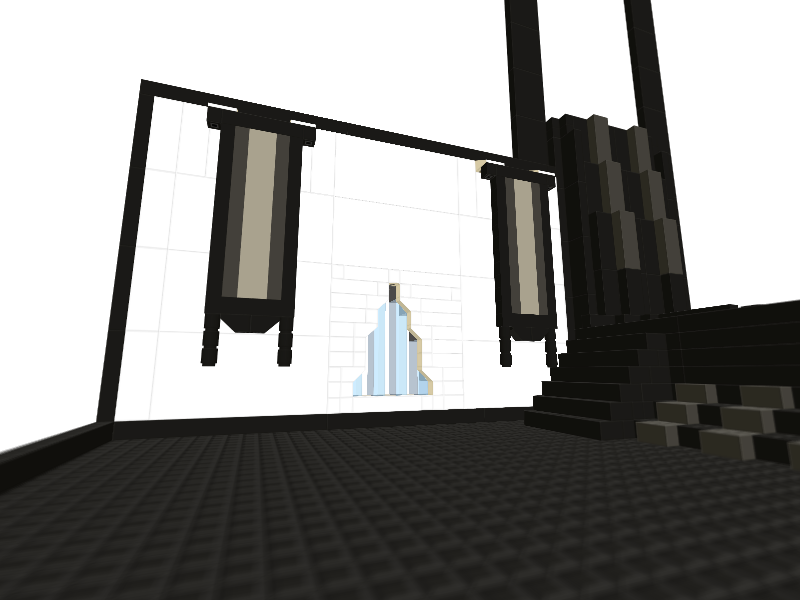 I didn't like the broad white walls, so I decided to do a tapestry of sorts. I was going to do crosses, but it seemed kind of out of place in the build, especially because it wasn't a church but an auditorium. Maybe if I do a chapel of sorts later on up, they'll go well in there.