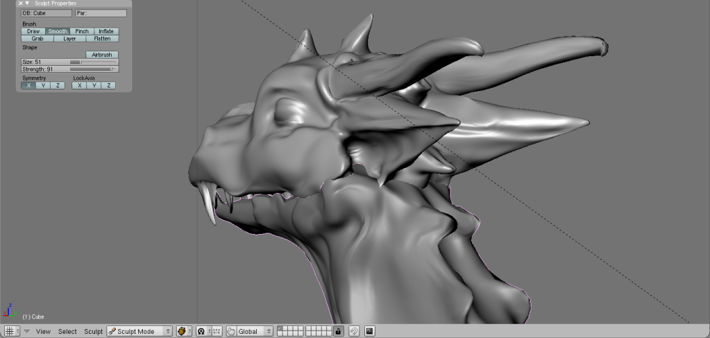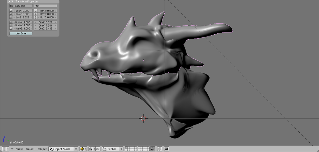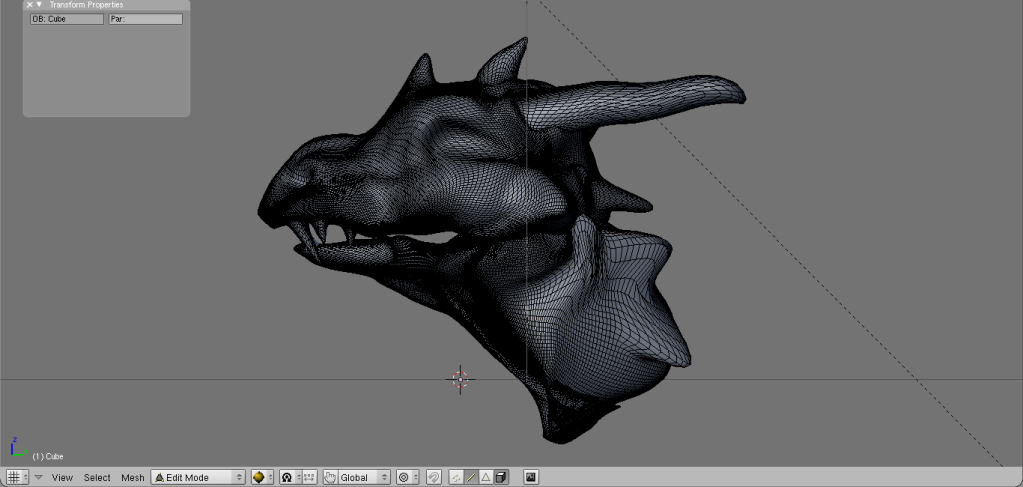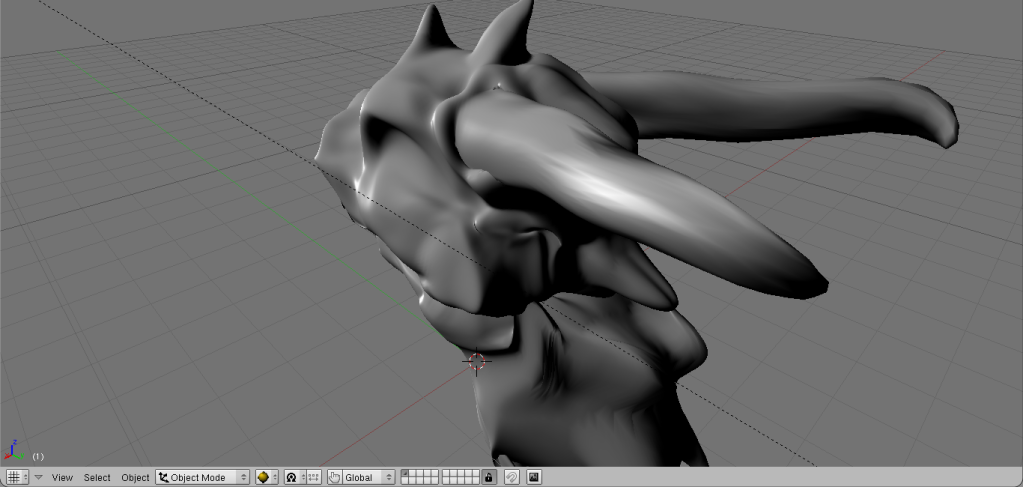 Added ears, eyes, and touched up horns, teeth, etc. ~2 hours of work, and now I shall go to my quarters and turn in for the night. Will probably (with proper motivation) continue working tommorow.