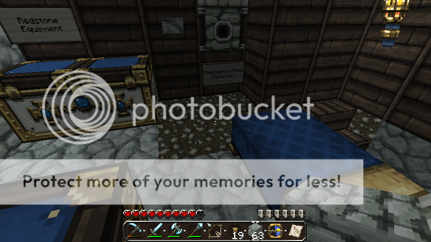 This is my concealment chamber. Comes ready for long-time stays, with an Emergency Food Dispenser, Redstone Equipment, a bed, and storage for valuable items.
