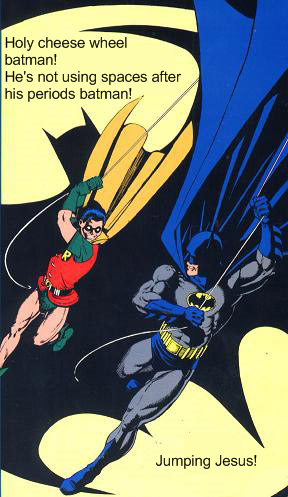 Holy forget batman! He's not using spaces after his periods!